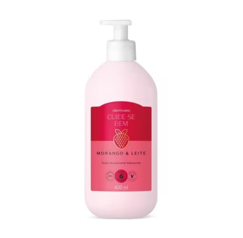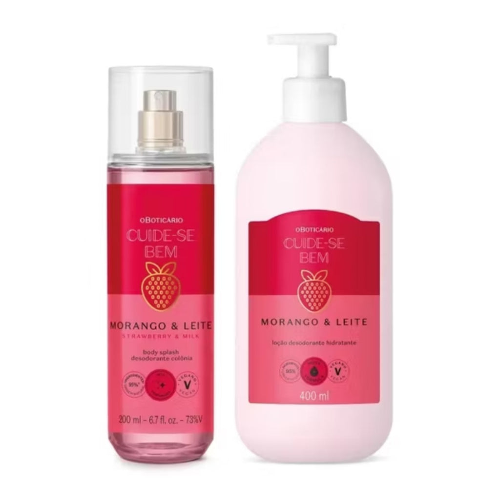Combo Morango e Leite , Loção Corporal 400ml + Body Splash 200ml